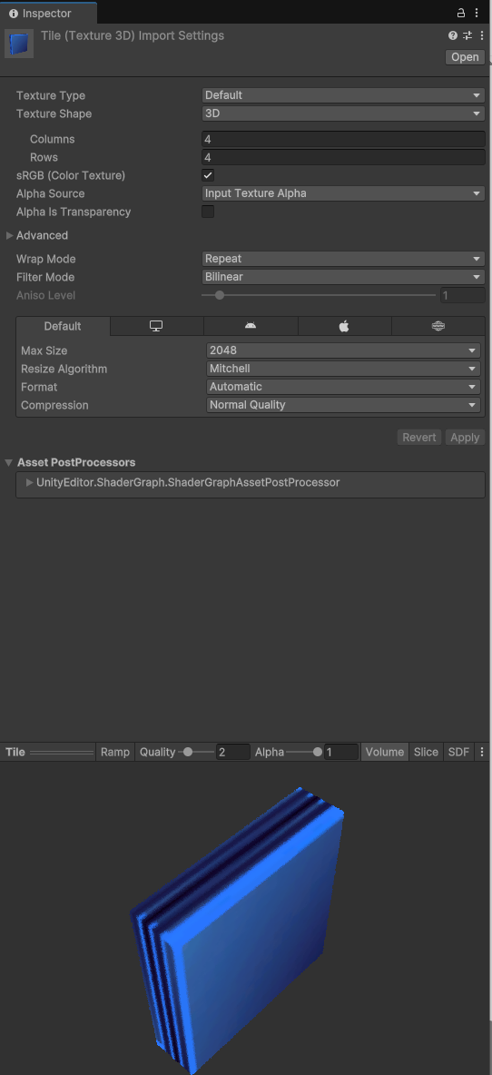 이 텍스처는 이제 3번째 디멘션 값을 가지고 있는 상태가 된다.